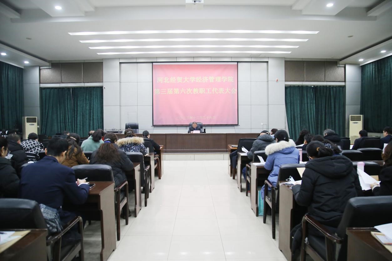 第三届第六次教职工代表大会在图书馆报告厅召开。学院党政领导班子出席,来自五个代表团的54名代表参加。大会由副院长张进良主持。