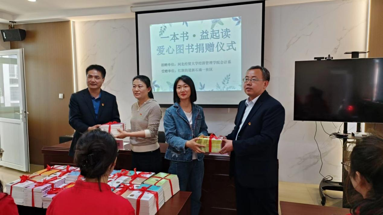 会计系向红旗街道新石中路南一社区捐赠图书200余本。会计系党委书记廖俊峰、会计系团委书记陈江伟出席了捐赠仪式。