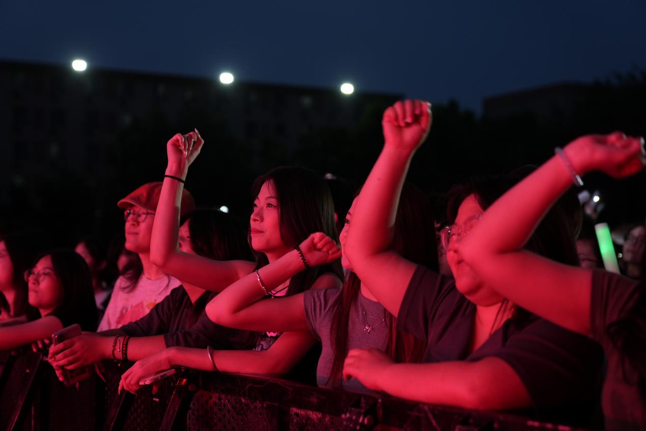 演出当晚,低音炮的调试音响起,立刻吸引了同学们的目光,不需要开场,“站立禁区”乐队一首《跑起来就带风》,即刻拉开了毕业季摇滚音乐节的帷幕。