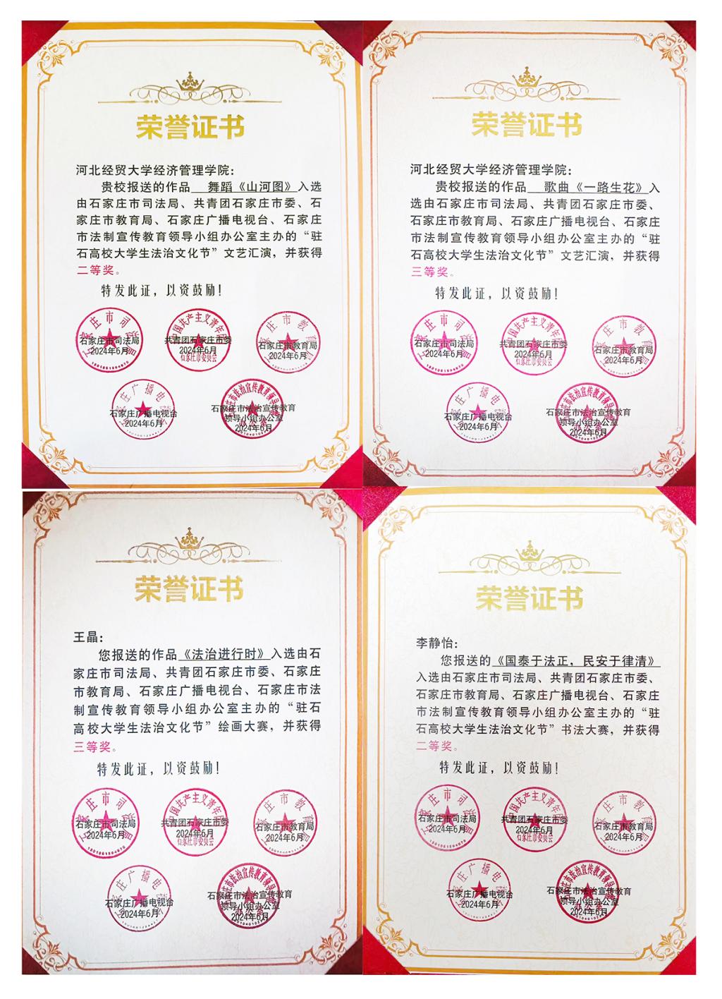 师生选送的作品在众多参赛作品中脱颖而出,共斩获四项大奖,彰显了学院法治教育和艺术创作的成果。
