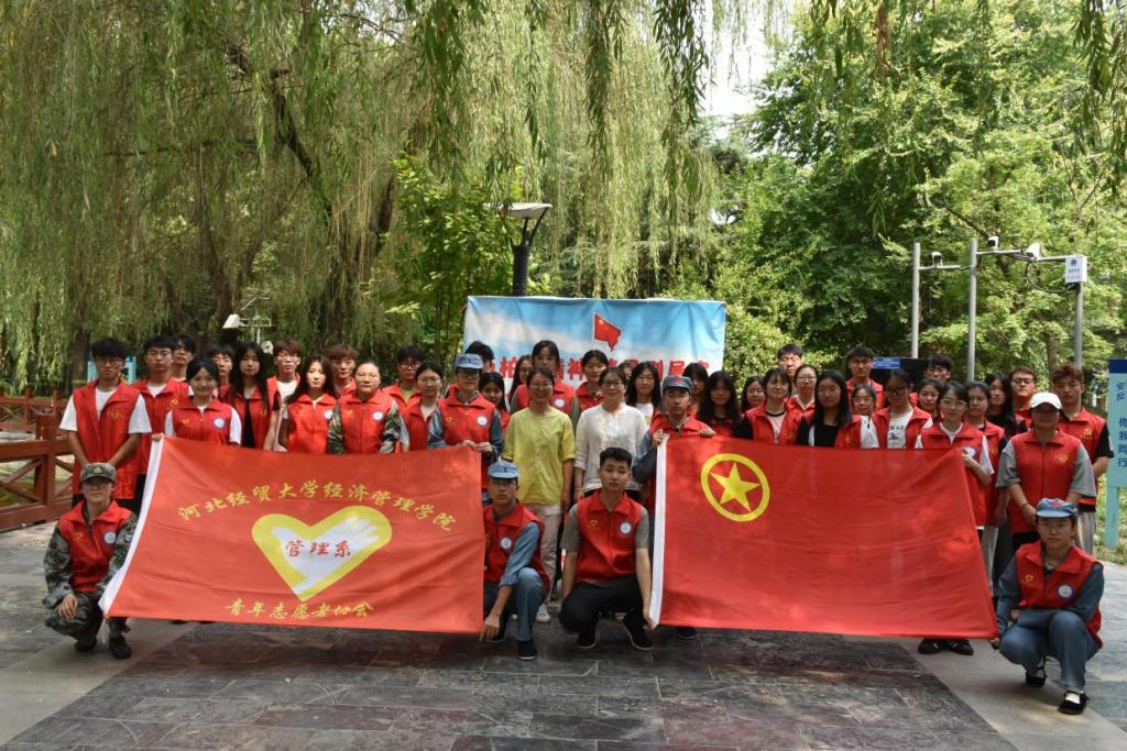 2024年全国大学生西柏坡精神宣讲团----青益行志愿服务团队与新石南一社区爱之声艺术团、常青藤舞蹈队携手,在石刻园举办了一场“迎七一颂党恩”西柏坡精神宣讲活动。