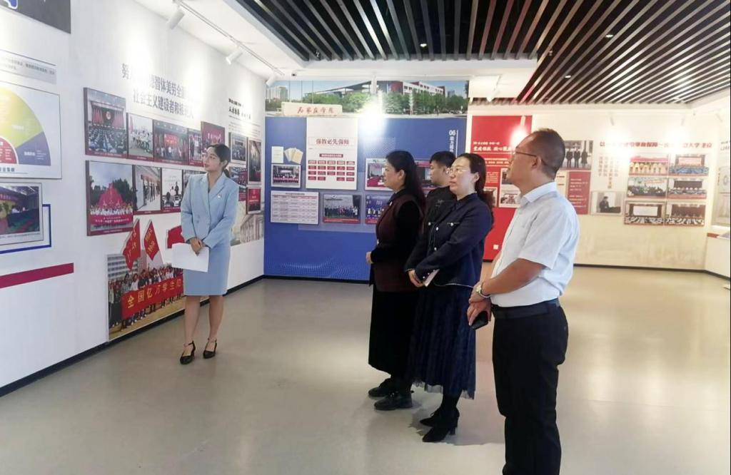 张丽英一行在石家庄学院美术与设计学院党总支书记史晶、宣传部副部长姚振伟的陪同下,先后参观了石家庄学院校史馆、石家庄地域文化馆、融媒体中心,详细了解了该校的办学历史、发展战略、校园文化及阵地建设情况,并与石家庄学院宣传部工作人员进行了座谈。