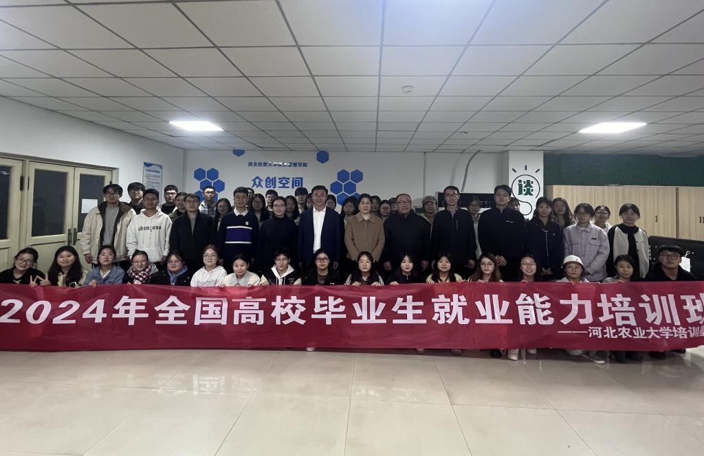在学院三教六楼举办了为期五天的2024年“宏志助航计划”就业能力提升培训班。本次培训由全国高校毕业生就业能力培训基地(河北农业大学)负责实施,共有55名小黄书