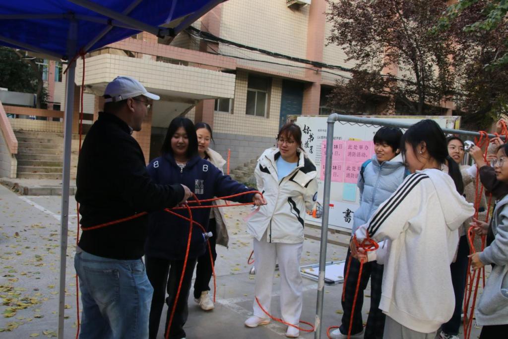 活动专区设置了“结绳学习区”“模拟逃生屋”“模拟灭火”“急救培训”等设施,模拟火灾发生现场,让同学们“身临其境”地学习消防知识,增强应对紧急情况的操作能力。活动区还设置了趣味游戏:安全知识答题、“长筷子”夹运乒乓球、消防水带保龄球……让同学们在游戏中增长消防知识,检验学习成果。
