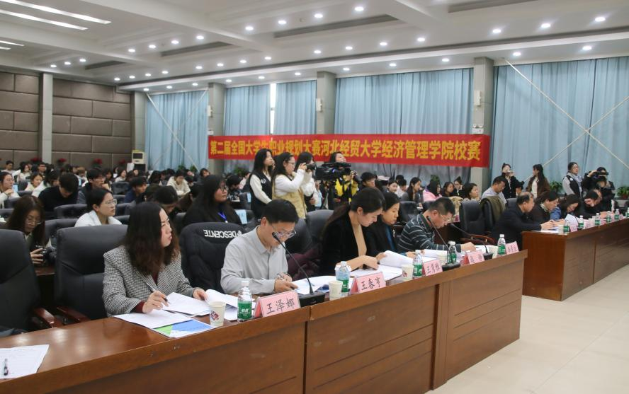 于图书馆报告厅举办第二届全国大学生职业规划大赛校赛。本次大赛特邀河北科技大学教育发展基金会秘书长李景生、石家庄职业技术学院教授匙静、石家庄铁道大学语言文化学院教师王隽雅、河北清然健康咨询服务有限公司创始人王泽娜、职场无忧教育总裁王春亨、学院副院长王鸿喜、就业工作部部长秦晓燕担任本次评委嘉宾。各系副书记、全体辅导员老师及学生代表到场观摩。