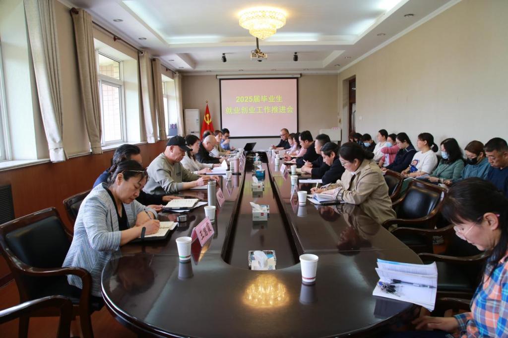 4月16日,学院在五楼会议室召开2025届毕业生就业创业工作推进会。院党委书记蔡杨、院长李大庆、副院长王鸿喜出席,各系负责人、就业工作部人员及各系辅导员参加,会议由副院长王鸿喜主持。