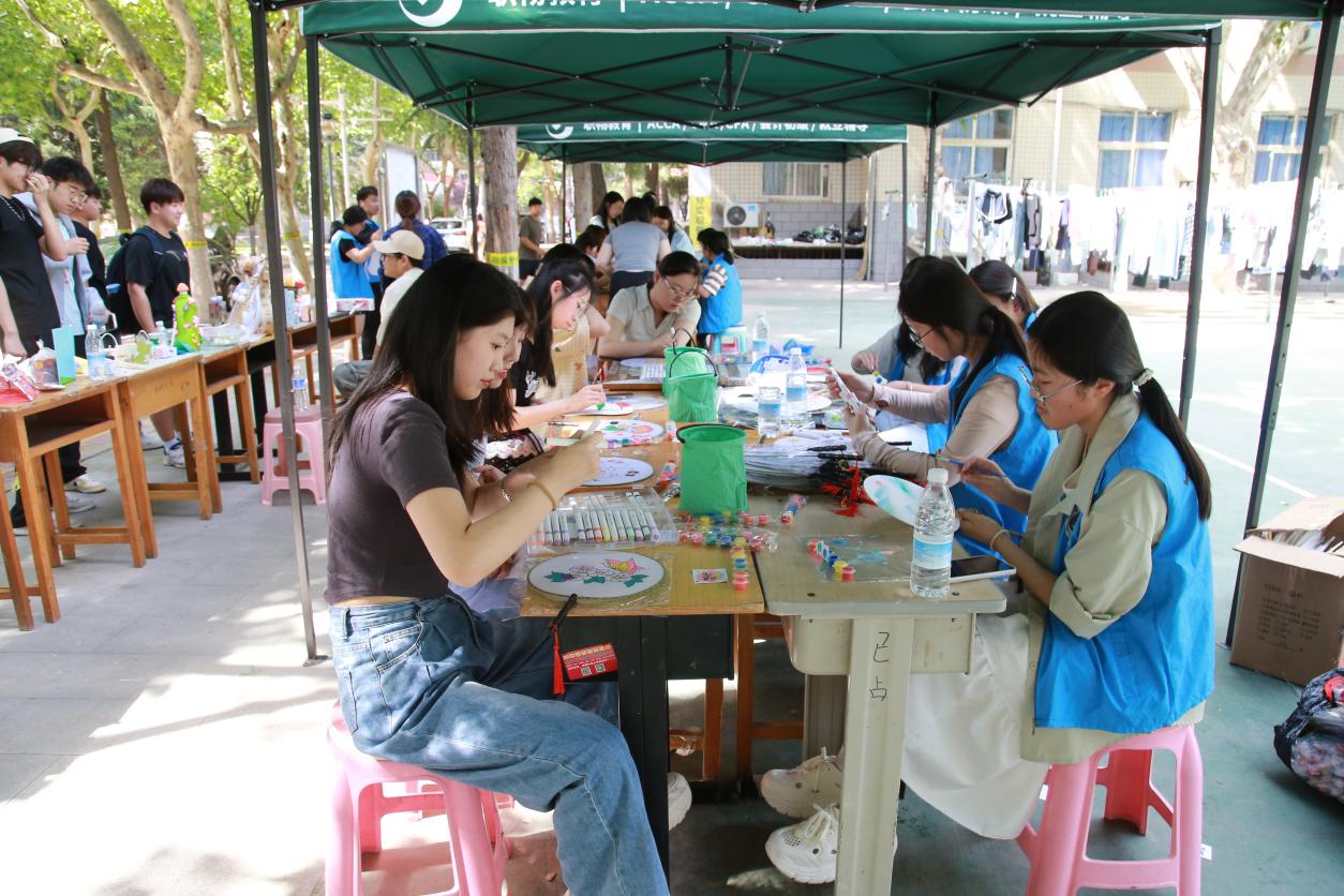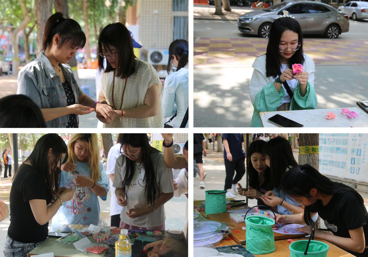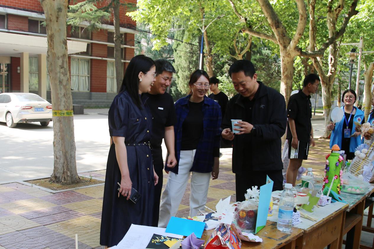 5 月 12 日下午,优秀作品展览评比在羽毛球场举行。学院领导蔡杨、刘佳现场观摩并点评。手工制作展区人头攒动,同学们的作品展现了对劳动的热爱和对美的追求,现场洋溢着青春活力。