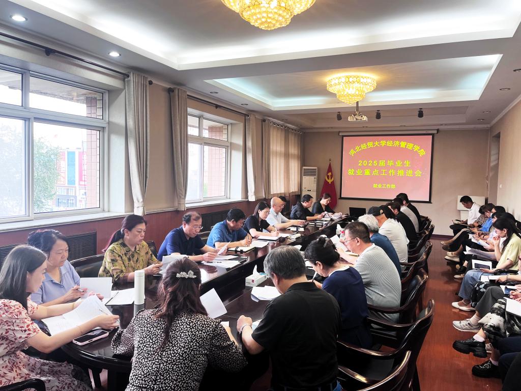 在五楼会议室召开2025届毕业生就业重点工作推进会,全面部署下一阶段就业工作。全体院领导出席,学院中层干部、就业工作部及毕业班辅导员参会,会议由副院长王鸿喜主持。