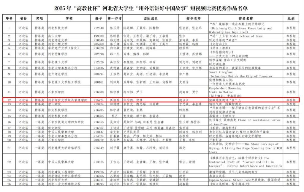 近日,2025年“高教社杯”河北省大学生“用外语讲好中国故事”短视频大赛圆满落幕,小黄书