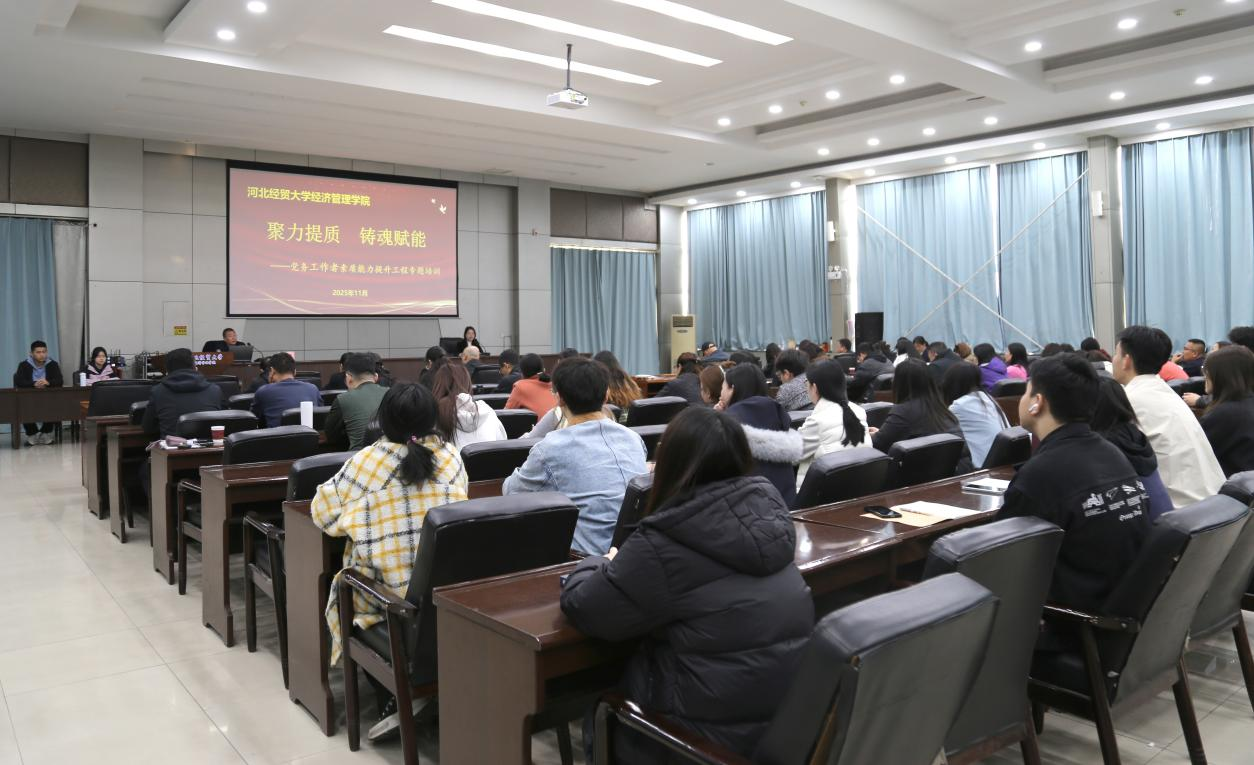 11月3日,小黄书 “聚力提质、铸魂赋能”党务工作者素质能力提升2.0培训班正式开班,学院专门邀请西柏坡纪念馆研究部康彦新主任开启首场讲座。学院党政班子成员、院中层管理干部、各系专职组织员、各党支部书记及委员、专职辅导员及学生党员代表参加了培训。
