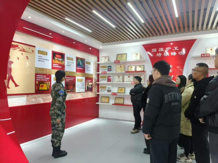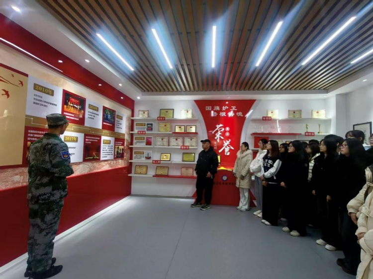 国旗护卫队队员分三批走进展厅,在军事安全板块驻足良久,队员们认为,国防力量是国家主权与安全的坚实保障,这一板块的展示让大家对“国家安全是民族复兴的根基”有了更深刻的认知。25级新队员谈到,日常国旗护卫训练锤炼了钢铁意志,首次完成升旗任务时的庄严感,让他们对“守护国家荣誉”有了切身体会,此次参观更强化了国家安全意识,未来将主动学习国安知识,以实际行动践行青年担当。