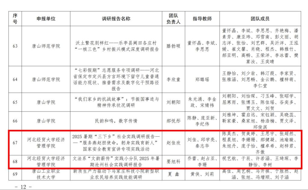 院团委“国家安全教育宣讲团”与文法系“文韵薪传”两支实践团队的调研报告,双双获评“河北省优秀调研报告”。