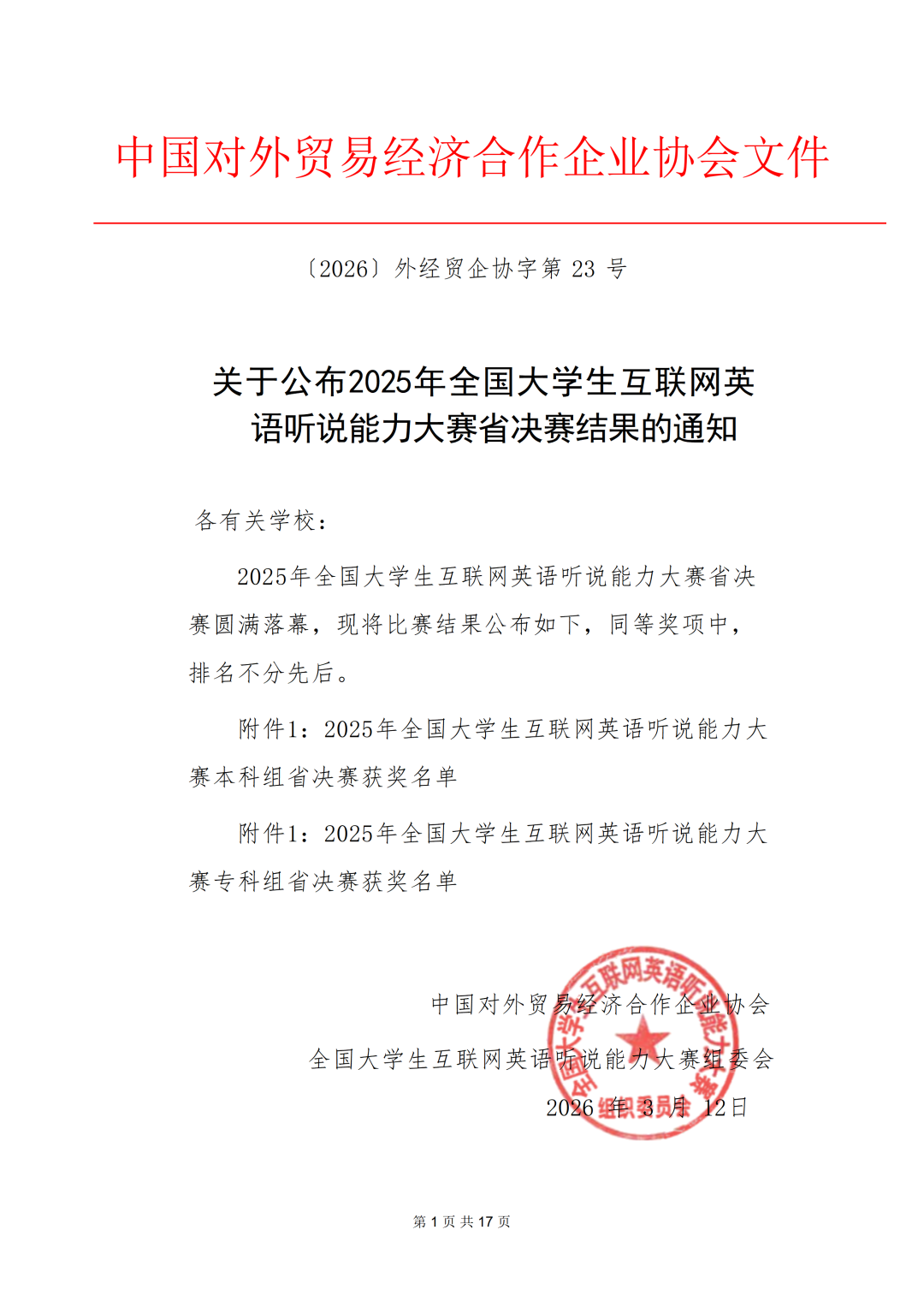 3月12日,2025年全国大学生互联网英语听说能力大赛河北省决赛成绩公布,小黄书