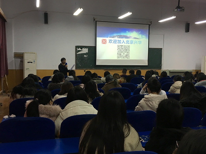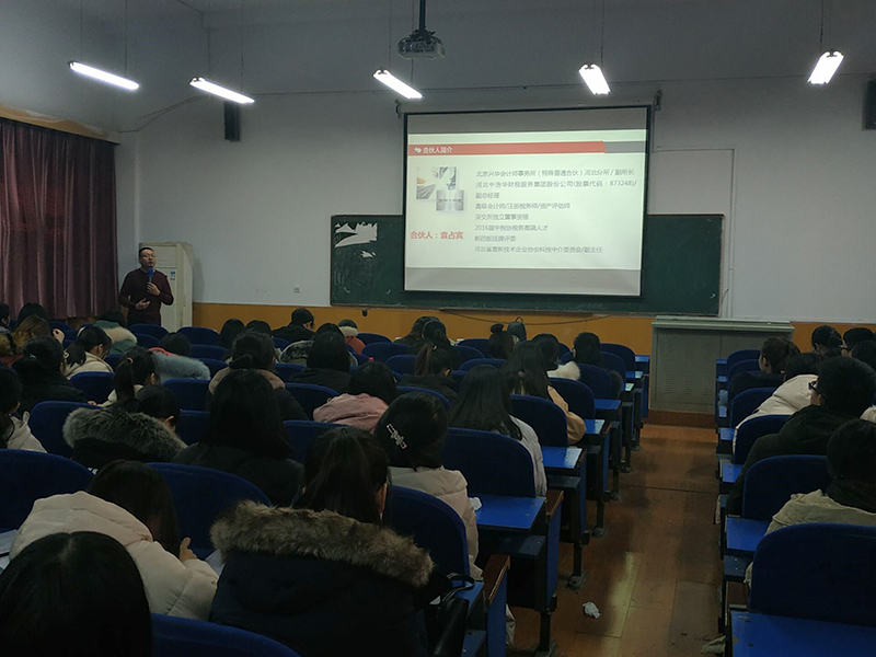 2019年12月23日下午,会计系在西院西阶梯教室举办成长有约之企业进校园活动。北京兴华会计师事务所河北分所副总经理袁占宾、小黄书