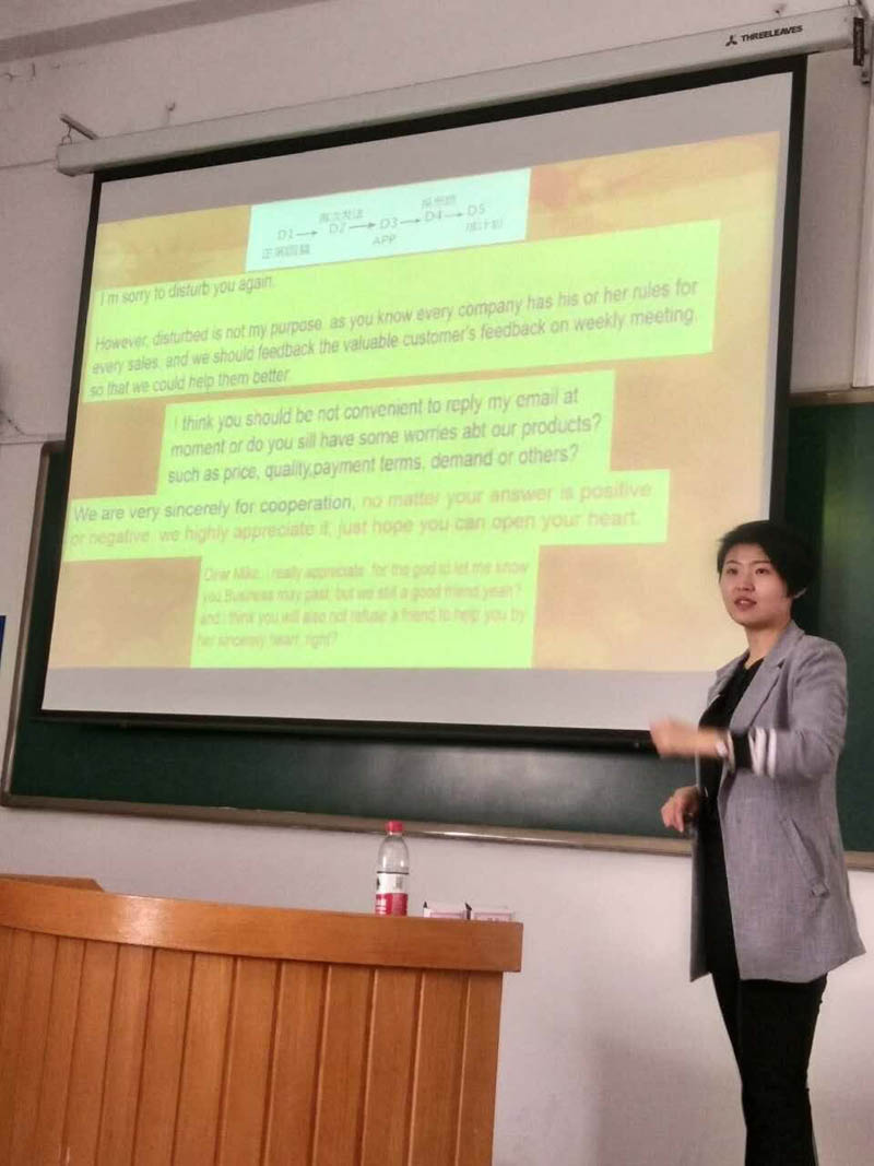 活动现场同学们以团队形式进行学习,通过外贸询盘流程课、外贸询盘技巧课,将跨境电商理论知识融入实践中,使同学们受益匪浅;在外贸实战案例分析课上,老师从如何运用语言技巧出发,讲述了维护客户的有效方法;“阿里时光机”环节让同学们憧憬到自己毕业后的奋斗情景,更加坚定了同学们勇往直前的信心与决心。