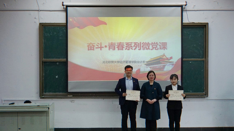 4月1日,会计系在西校区成功举办了“奋斗·青春”系列微党课的决赛。学院组织人事部部长陈玲、会计系党总支书记蔡杨、党务秘书孙韦、党总支青年委员张艳敏、教工党支部书记盖云凤出席了此次决赛并担任评委,全系学生党员、发展对象、入党积极分子共计210人观看了此次比赛。