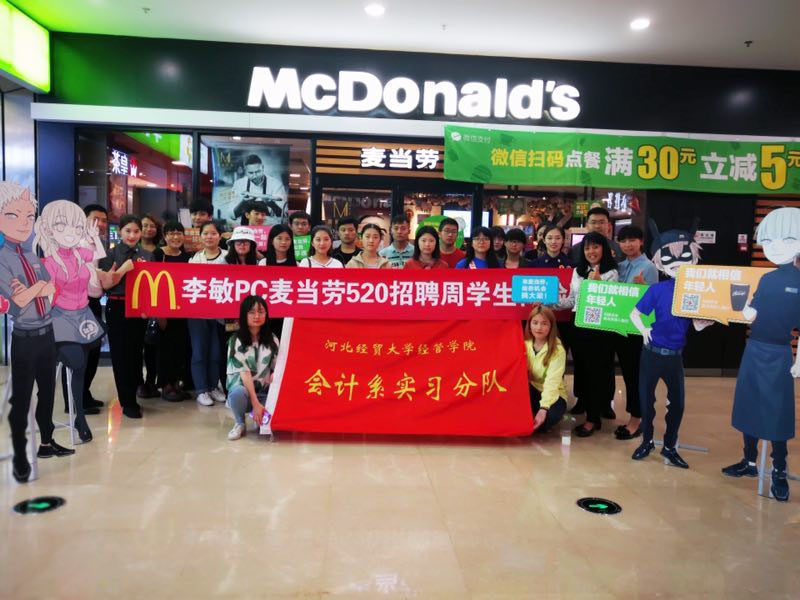 为提高同学们的实践能力,激发他们的学习热情,5月20日下午,在张艳敏和邓怀宇老师的带领下,会计系20名同学赴北京麦当劳食品有限公司万达广场店进行了参观学习。