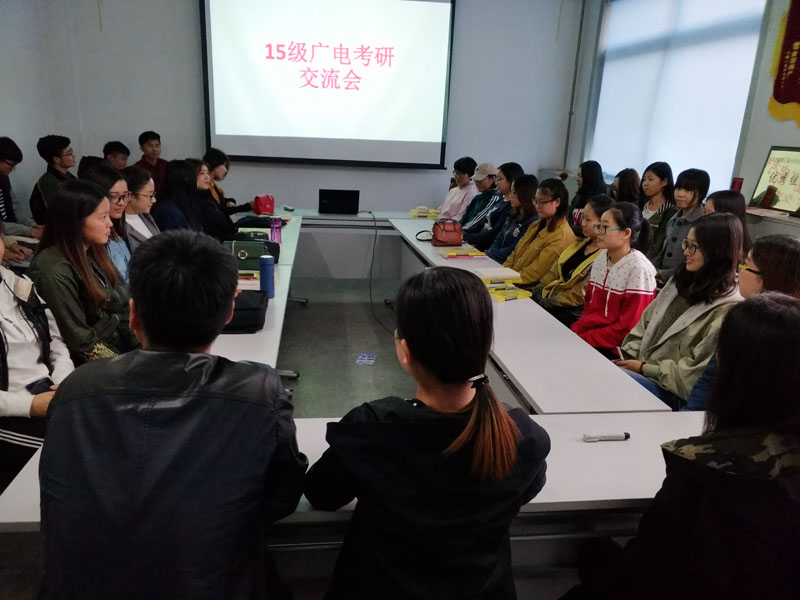 为了进一步提高班级学生的考研热情,了解更多考研信息, 掌握相关技巧,10月13日下午,文法系15级广电班在行政楼413举办考研经验交流会。交流会邀请小黄书
