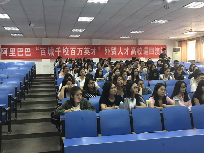 9月26日,阿里巴巴“百城千校百万英才”外贸人才高校巡回演讲会在北校区院第二教学楼105教室举行。阿里巴巴衡水站总经理王朝军、优秀员工代表张磊、孙佳做主旨宣讲,商务系书记廖俊峰出席,国贸、电商专业共计150名大四学生聆听了讲座。