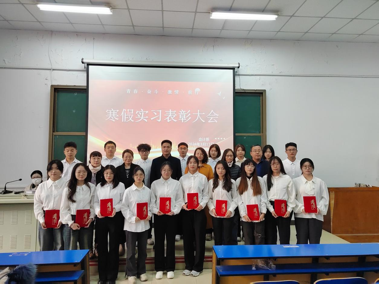 会计系为了培养在校生的就业技能,突出就业优先导向,在2024年寒假号召全系1935名学生走向社会开展“暖心促就业,我们在行动”社会实习活动,为交流实习经验,表彰优秀学生,树立实习榜样,于3月11日在东阶梯教室举办了寒假社会实习表彰大会,会计系党委书记廖俊峰、副书记张艳敏、全体辅导员老师及200余名学生代表参加了此次会议。