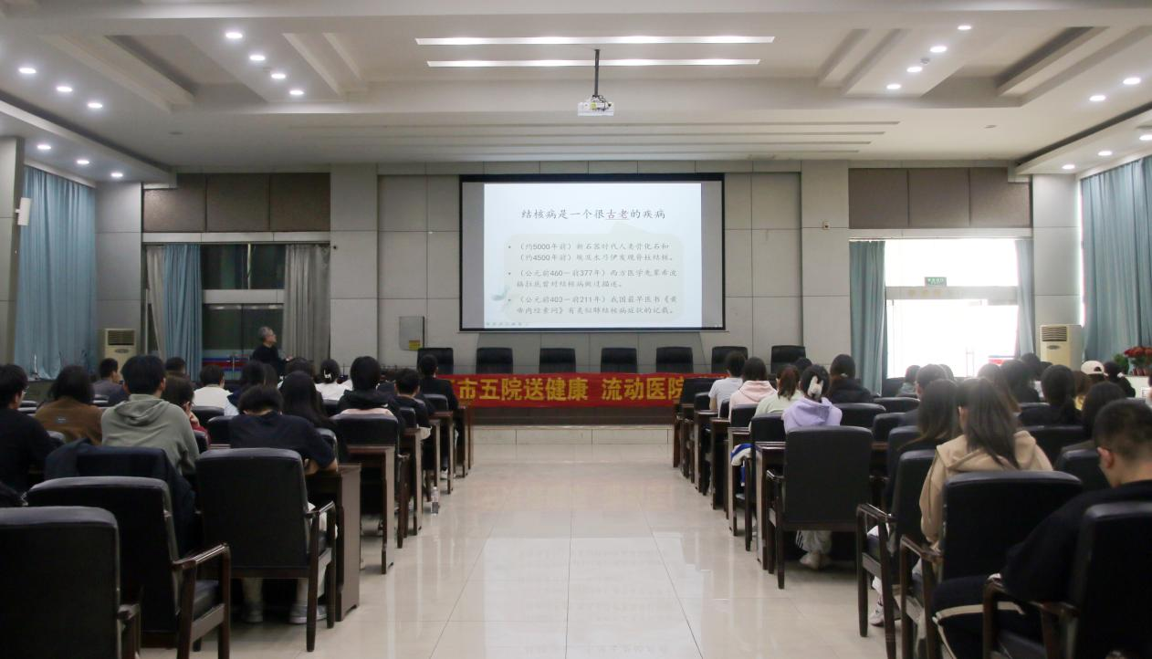 在图书馆报告厅举办肺结核病防治专题讲座。本次讲座由石家庄第五医院结核科主任王海宾担任主讲嘉宾,百余名学生到场聆听。