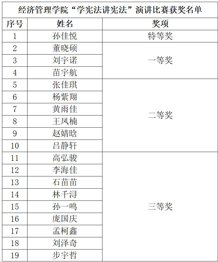 此次“学宪法讲宪法”演讲比赛和素养竞赛以赛促学、以学促用,提升了同学们的法制观念和法治素养,增强了同学们维护宪法尊严、保证宪法实施的责任感和使命感。文法系将一如既往做好“学宪法讲宪法”系列活动,为建设中国特色社会主义法治体系、建设社会主义法治国家贡献青春力量。