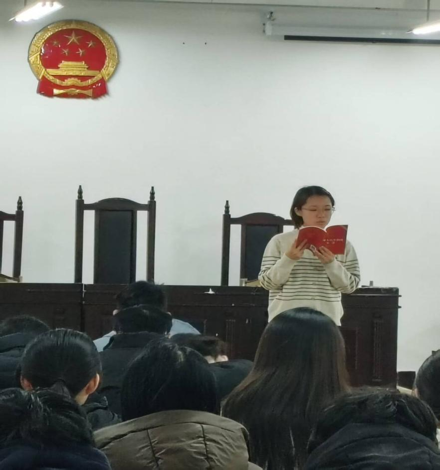 12月4日,文法系在二教模拟法庭举行宪法诵读活动,文法系主任赵占亚出席活动,法学专业100余名同学参加。