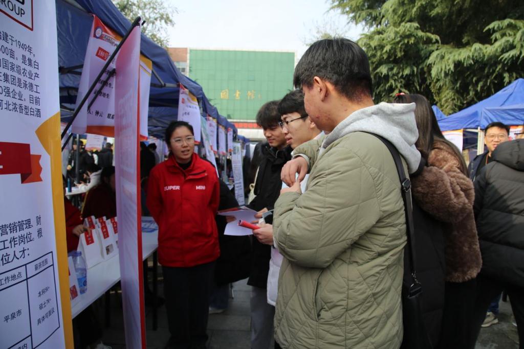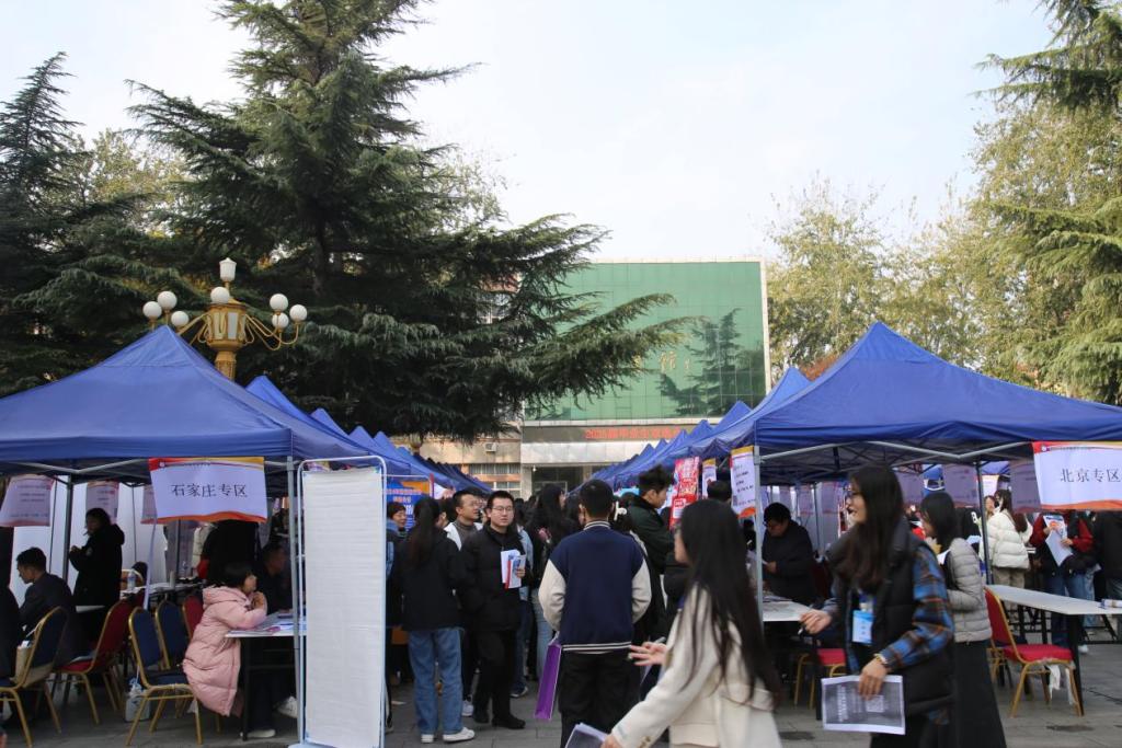 在图书馆广场举办了2025届毕业生校园双选会。本次双选会吸引了顺丰速运、五得利面粉、北京指南针、微宝云科技发展公司等260余家单位参与。