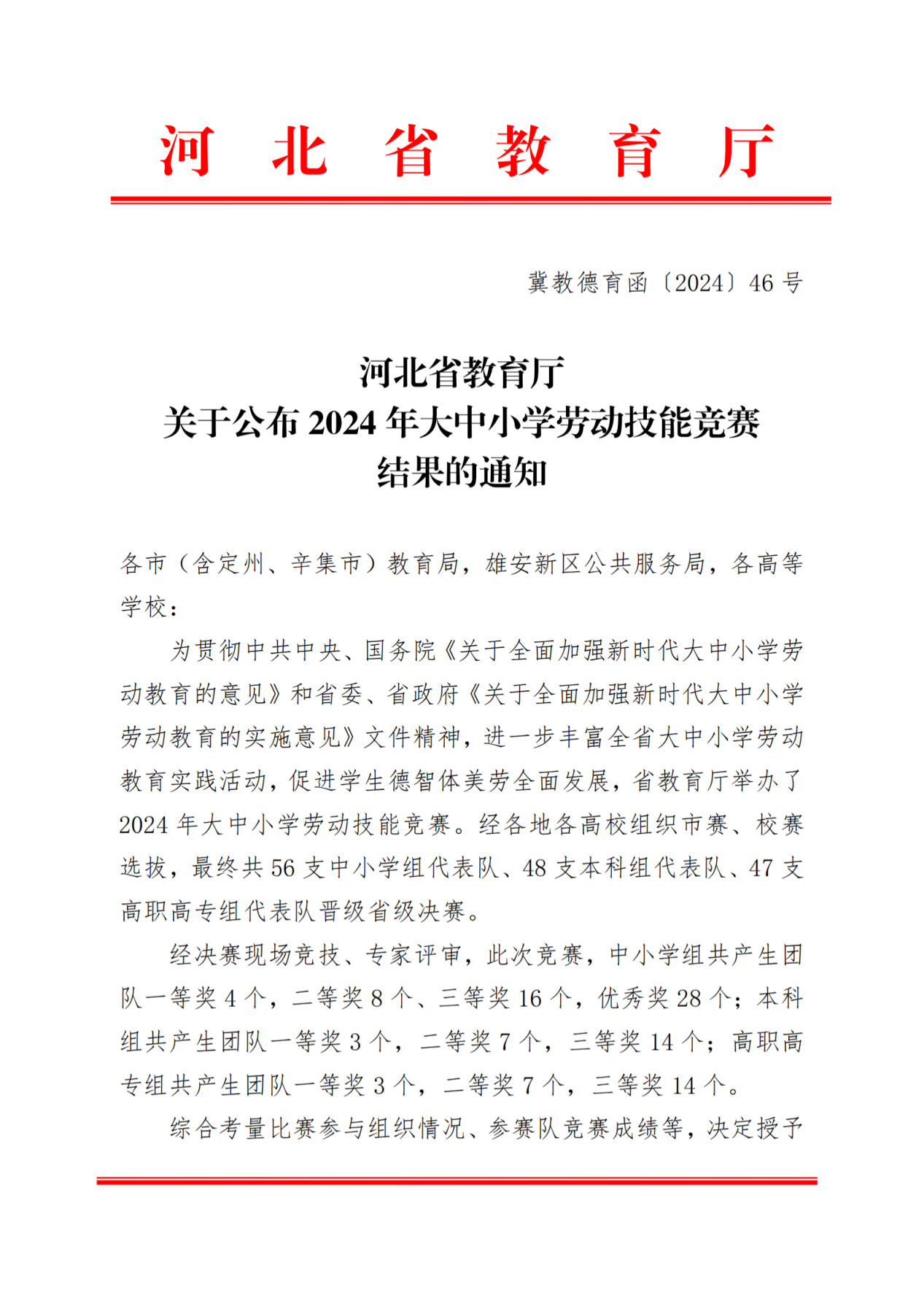 近日,河北省教育厅公布2024年大中小学劳动技能竞赛结果,小黄书