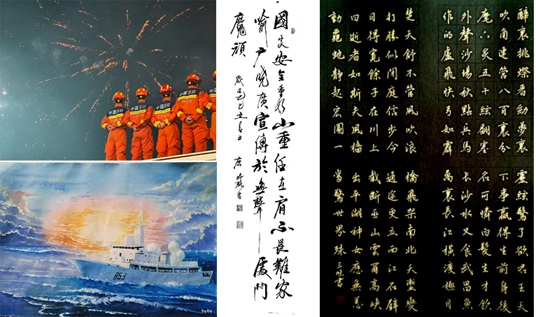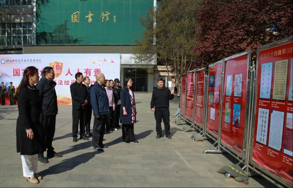 以“全民国家安全教育日”为契机,在图书馆前广场举办“国家安全教育日师生书画摄影作品展”,展现师生对守护国家安全的理解。学院领导和国家安全教研室教师参观了展览。