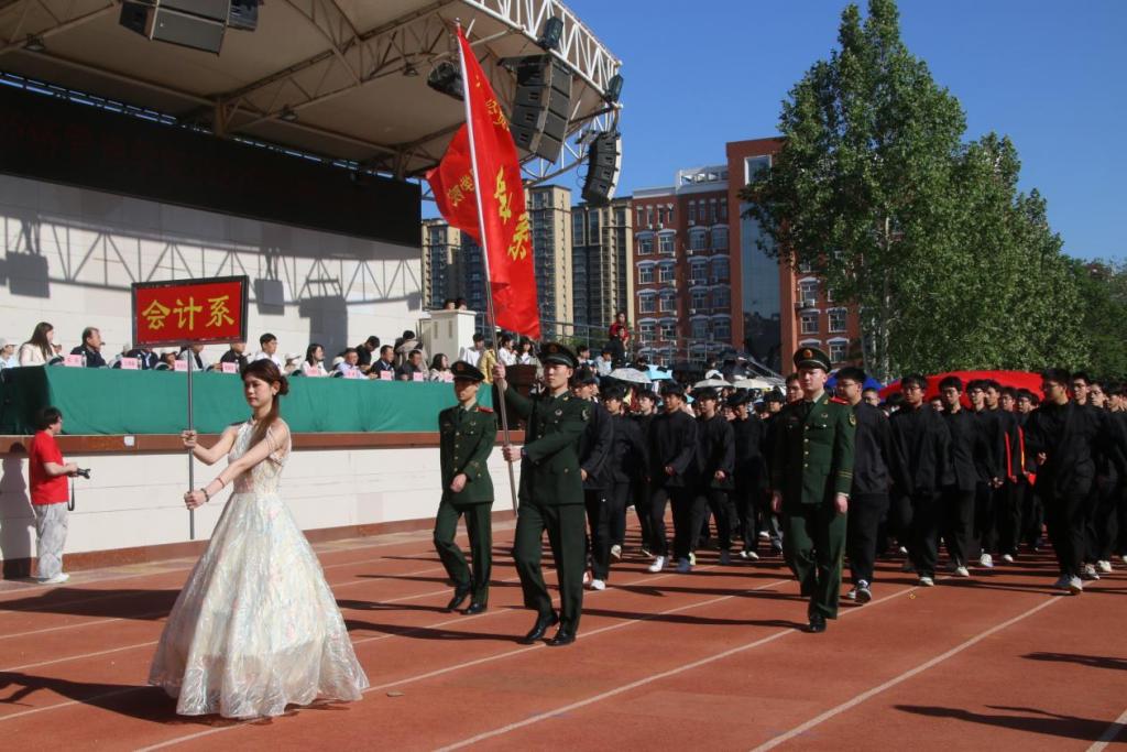 4月24日上午8点30分,春季运动会在南校区操场开幕。校党委副书记王保军出席,校办公室副主任鲁爱臣、学院全体班子成员和系部负责人在主席台上就座,开幕式由副院长董芝主持。