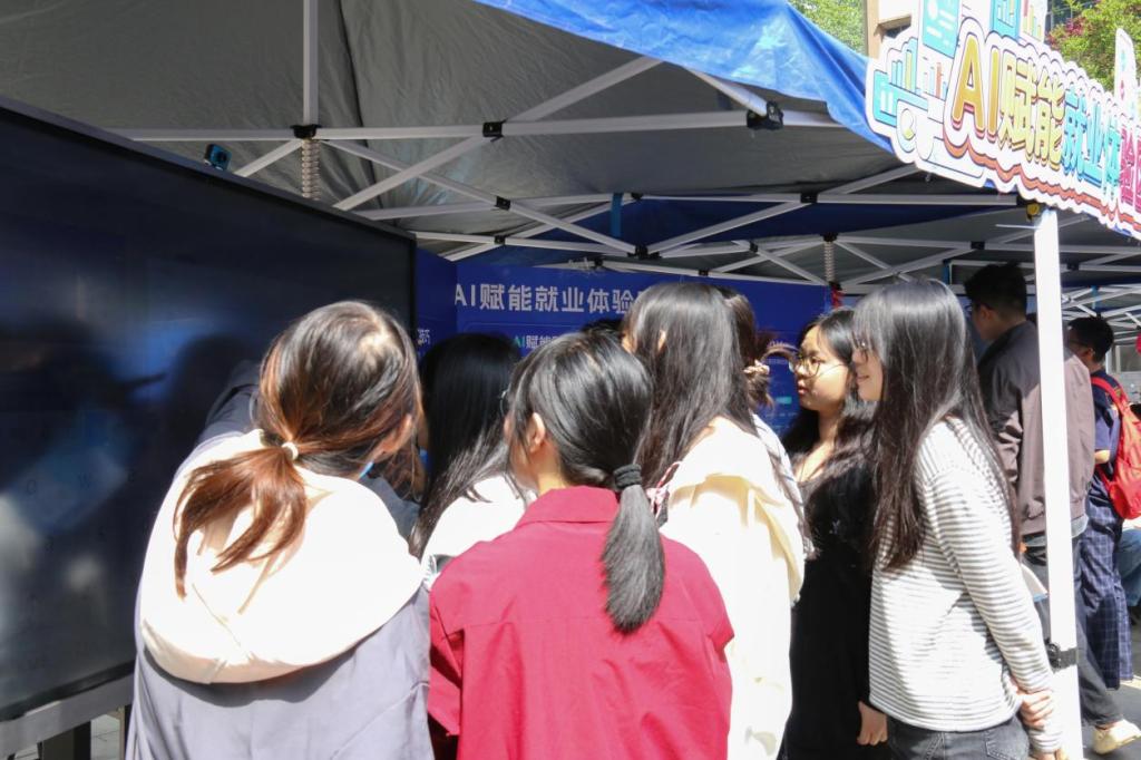 本次双选会特别设置的AI面试体验区,是全场亮点区域,众多学子在设备前排起长队,有序等待体验智能化面试服务。“AI面试官”能够根据求职者提交的简历信息进行精准提问,针对候选人作答内容实时开展多轮深度追问,面试结束后系统立即生成全面评估报告,清晰展示岗位匹配度及多维度能力评分,为求职者提供直观、专业的面试反馈。一名体验过该区域的同学分享:“挺有帮助的。它帮我发现了简历里一个没注意到的表达问题,还给了修改建议,感觉改完之后更清晰了。模拟面试让我提前过了一遍面试流程,心里更有底了。”