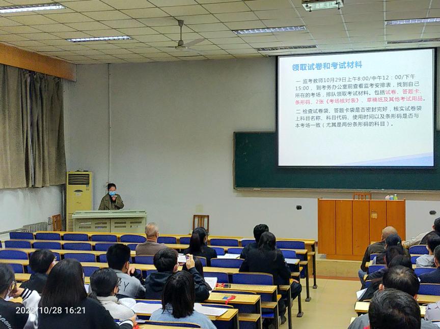 教务部部长郭占欣传达了我市中小学教师资格考试(笔试)考务会议精神及相关要求。教务部王新老师对监考工作的各个环节进行详细梳理,并就本次考试的新变化做重点提示。