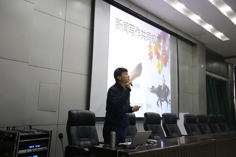 11月23日、24日,宣传部邀请《燕赵晚报》高级记者李梓在图书馆报告厅为300多位学生讲授《新闻写作的共同规律》和《消息的写作技巧》。讲座中,李梓以《中国青年报》一篇消息为切入点,给大家讲解了新闻写作的基本要求、技巧、标题的构成及新闻语言的规范运用,并以自己所采写的稿子为例,详细讲解写好消息的技巧。讲座过程中,李梓记者不时向学生们提问,学院负责新媒体的学生也将自己的困惑提出来向记者请教。