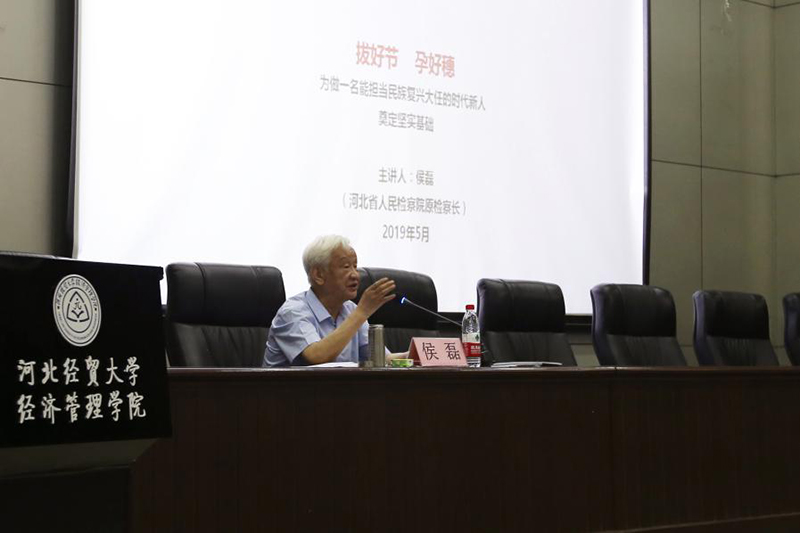 5月24日下午,学院图书馆报告厅频繁传出热烈的掌声,报告会一结束,会场上200多名青马工程学员同时起立鼓掌致谢,掌声是送给本次报告的主讲人——年届八旬的河北省检察院原检察长侯磊的,他以“拔好节 孕好穗 ”为主题,为同学们诠释如何做一名能担当民族复兴大任的时代新人。学院党委书记张进良、副书记张丽英、院团委及第十二期青马工程200多名学员共同聆听了报告。