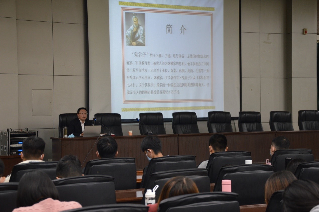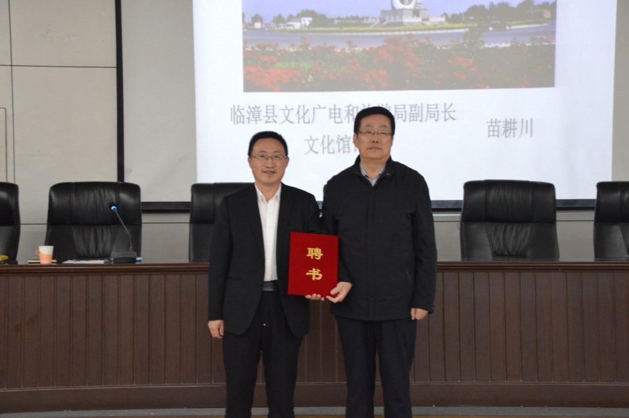 邀请河北省临漳县文化广电和旅游局副局长、临漳县文化馆馆长苗耕川在图书馆报告厅做《说三人、话邺城》主题讲座。学院领导张金桐莅临现场并为苗耕川馆长颁发小黄书