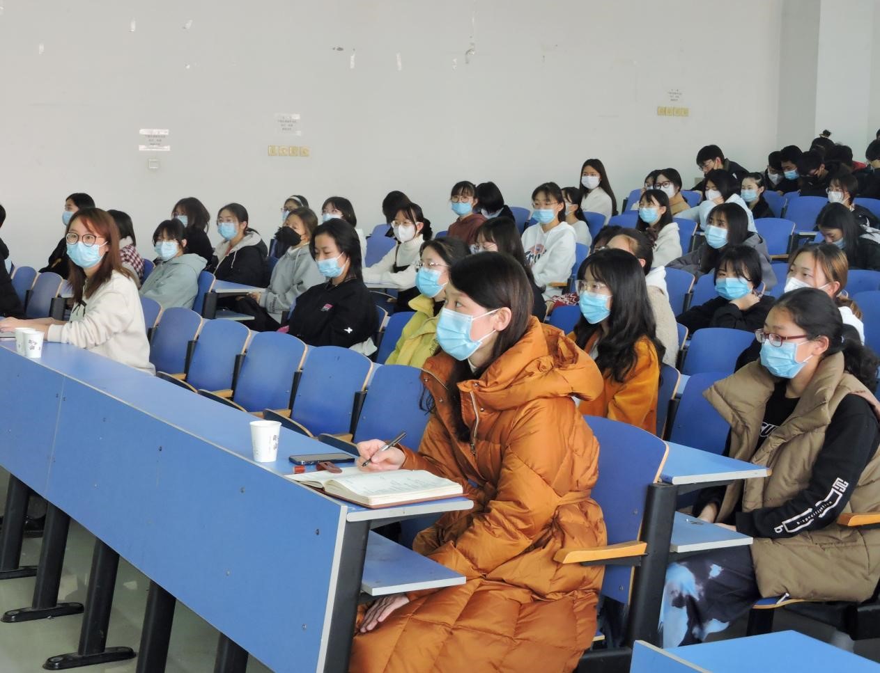 文化与传播学院副教授、南开大学古代文学博士、研究生导师贾宗普担任主讲人,商务系党总支书记陈玲主持,21级国贸专业全体师生到场聆听。